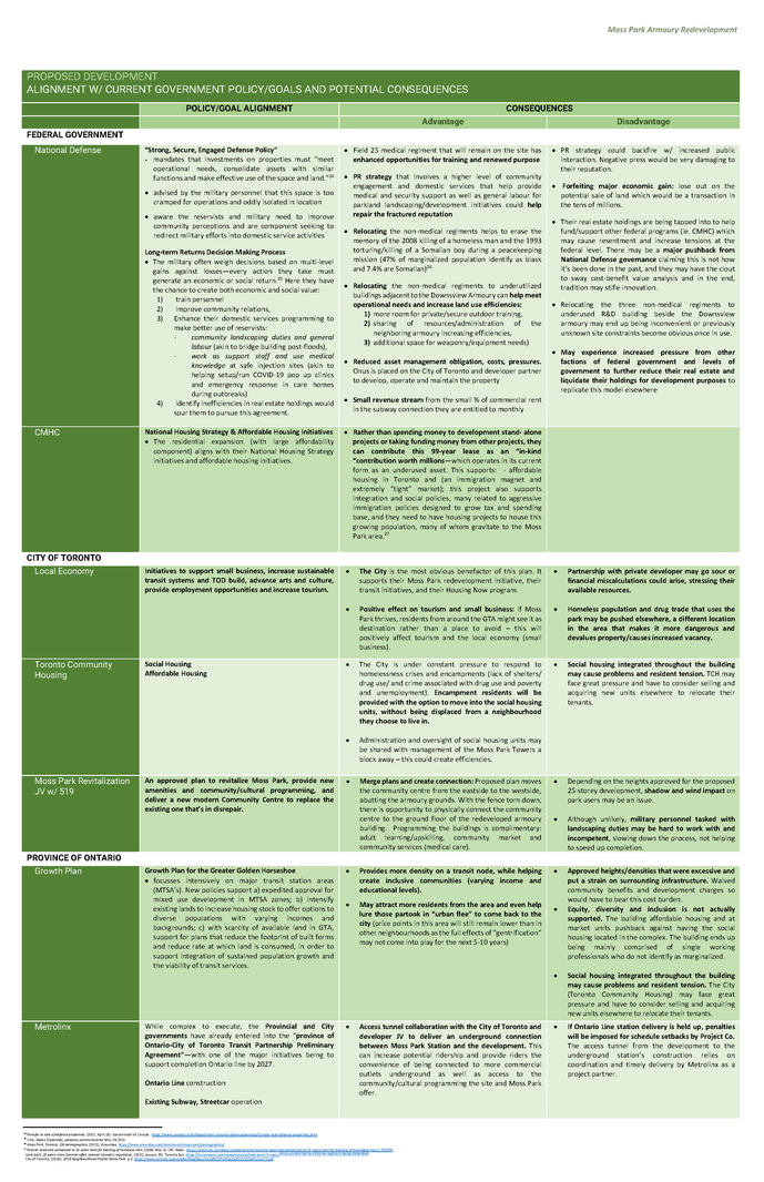 The site is situated at a point of intersection: literally at the busy street corner of Jarvis/Queen, and figuratively with military and civilian populations and, from a development perspective, with overlapping levels of government ownership and investment. As crown land, the Federal Government owns the site and Armoury building and are responsible for military programming; adjacent Moss Park (community centre and social infrastructure) is owned by the City, as well as nearby Toronto Community Housing towers; and the Province owns Metrolinx who will bring a new Ontario Line Station to Moss Park. The proposal calls for tri-level government involvement.